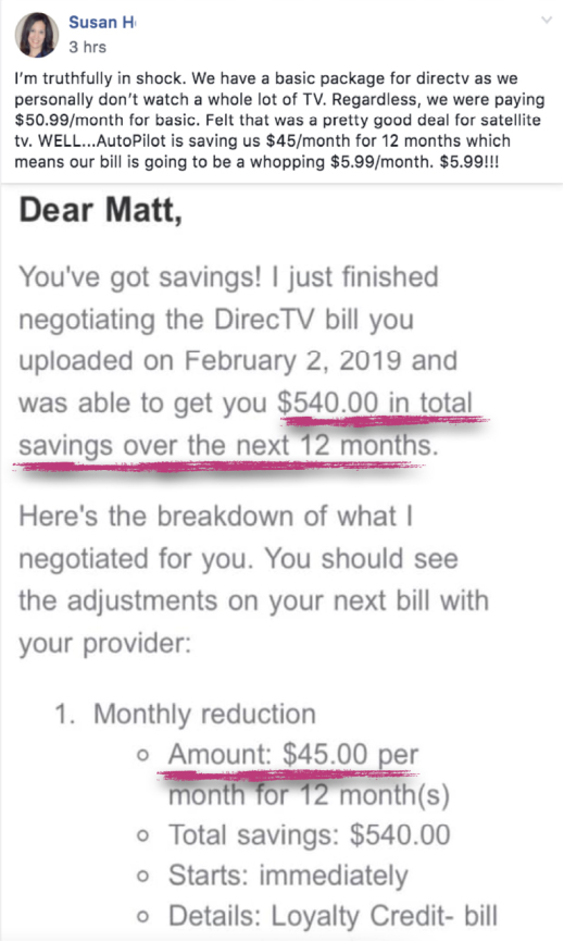 AutoPilot saved me a total of $1,068 on my internet and cell phone bills for 2 years!